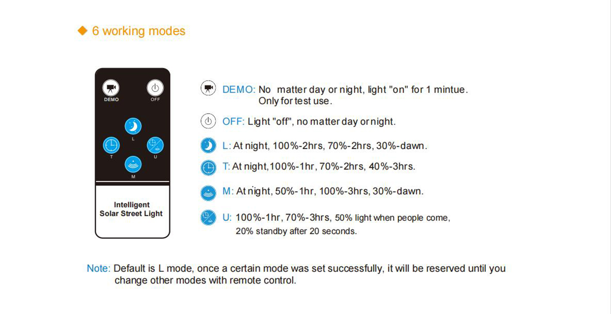 Upgraded intelligent power control function to regulater reasonable discharge power according to intelligent judgment of recent weather conditions, support longer lighting time and more rainy days